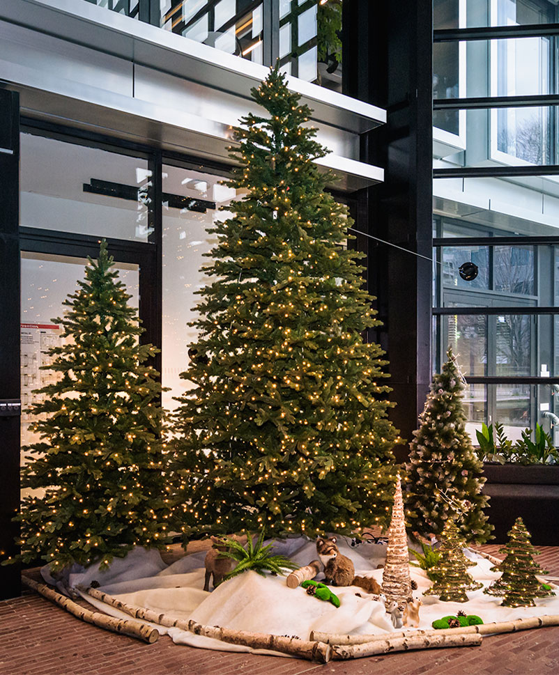 Ambius s’adapte à vos besoins en vous proposant des décors de Noël uniques en location.